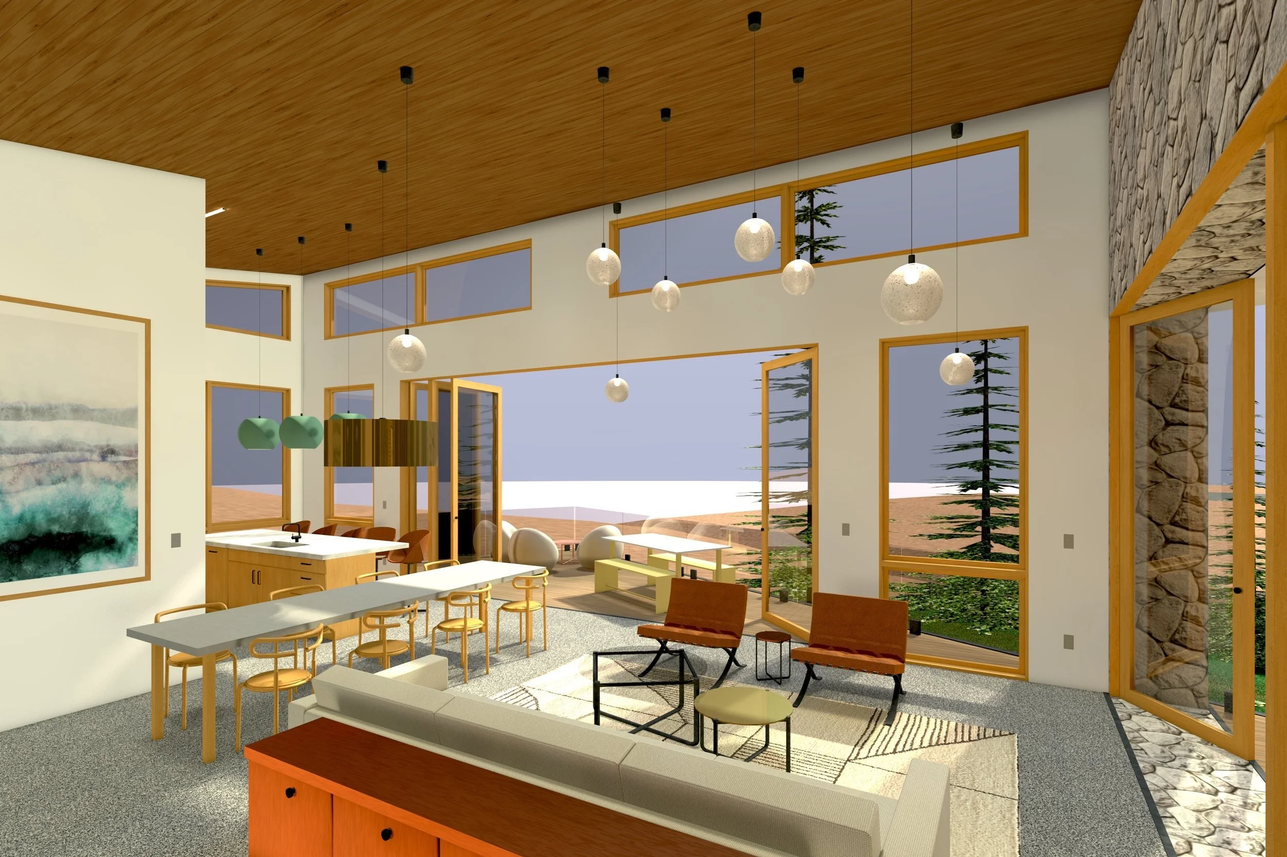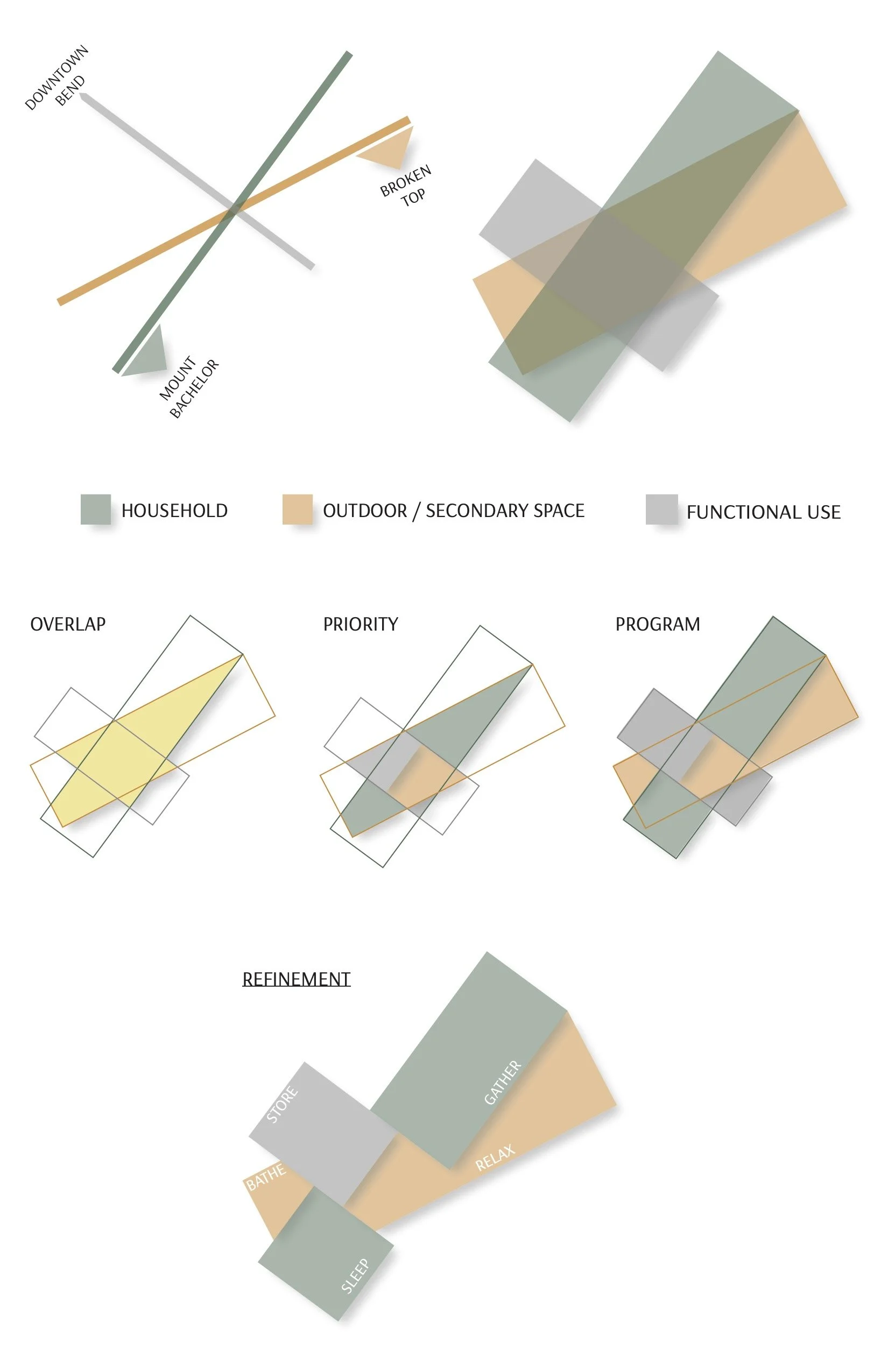 Situated on the lush land of Tumalo Mountain, this nature-lovers paradise directs its views toward Mount bachelor, the Sisters, and the surrounding Cascades. Composed of multiple axis, the home forms a directional map to the surrounding natural landmarks. The design was focused on respecting the natural property by forming itself around established trees and taking advantage of the hillside. Providing interior and exterior pathways on the main floor blurs the line between nature and home.