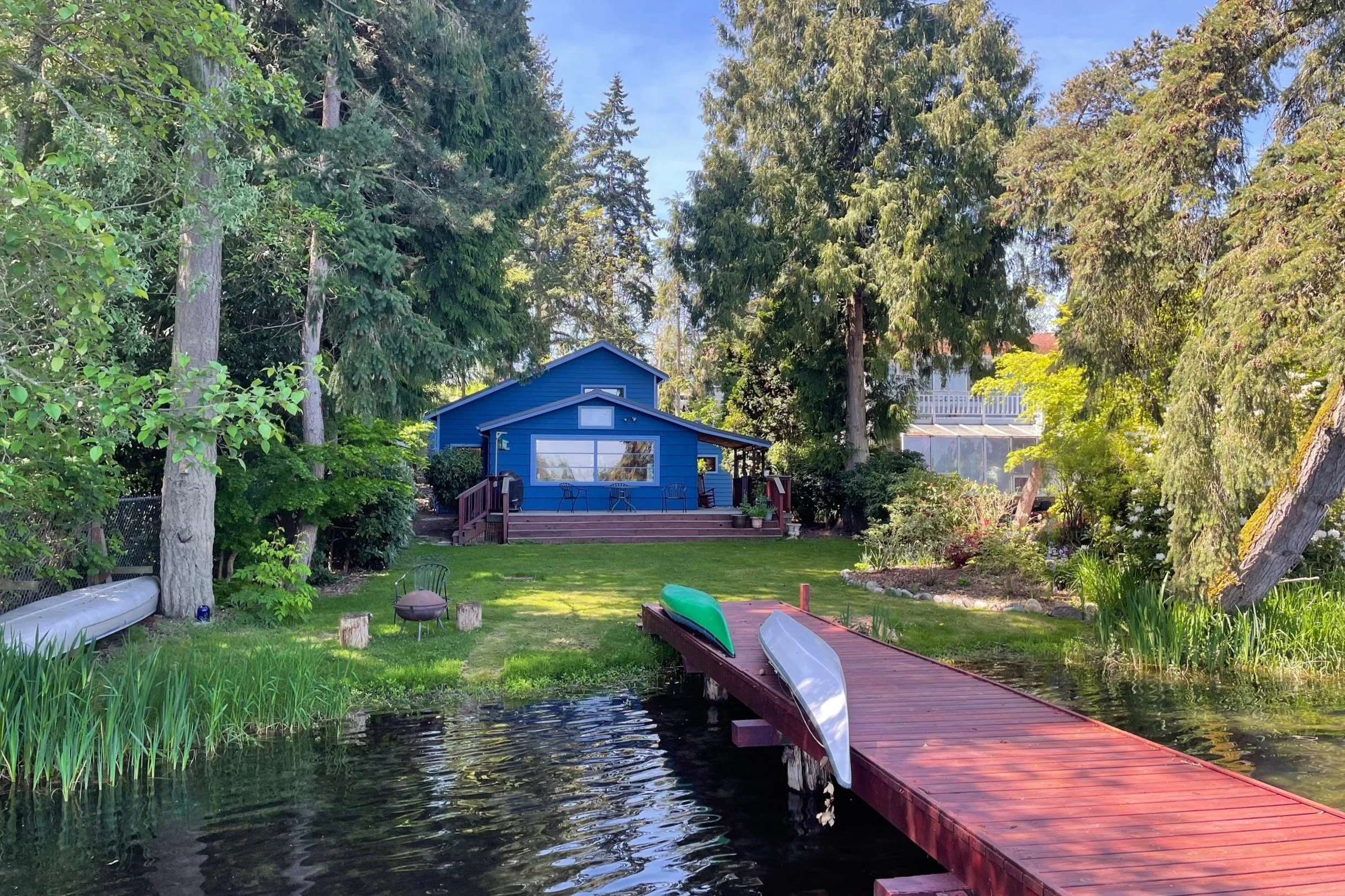 This quirky cabin on the shore of Lake Martha is the backdrop for intellectual living. High vaulted ceiling allows light to warmly filter into the library, kitchen, and entry. It creates a hidden den accessed by an integrated hand crafted ladder. The untraditional beauty of this home is modest and must be discovered through experience.